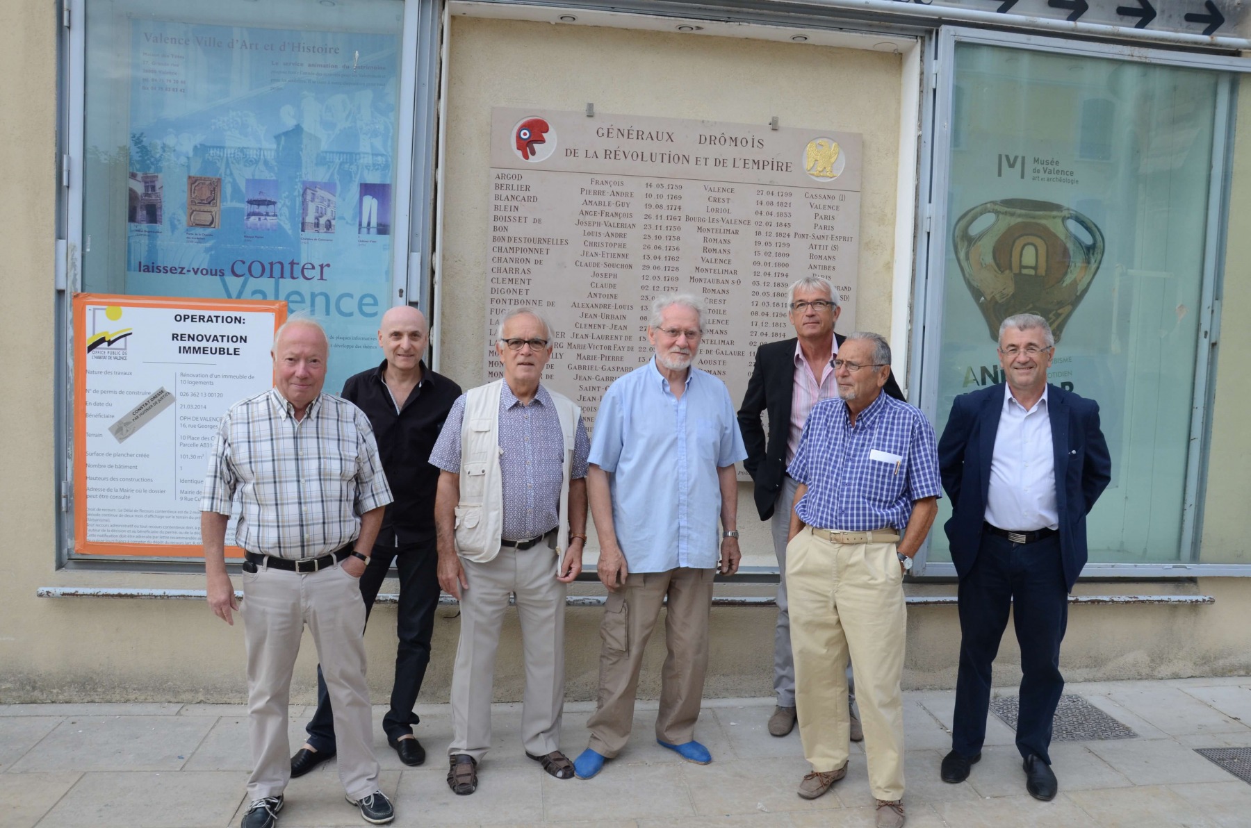 Le vendredi 16 septembre 2016, Bonaparte à Valence a inauguré, dans le cadre de son exposition annuelle organisée salle des Clercs à Valence, une plaque commémorant l’engagement des 28 Généraux Drômois de la Révolution et de l’Empire. Réalisée en calcaire de Comblanchien, par Jean-Paul Ravit, qui a gravé à la main plus de 1lettres, cette plaque mesure 2 000 x 1 600 et pèse plus de 400 kilos. Elle a été installée sur une façade de la Chapelle Notre-Dame de la Ronde où Bonaparte monta la garde en 1785. Le ruban a été coupé par E. Suchet, duc d’Albufera en présence du député Patrick Labaune, du sénateur Gilbert Bouchet, du maire de Valence Nicolas Daragon, du VP de la Région Marlène Mourier et de Jean Etévenaux qui représentait le Souvenir Napoléonien.